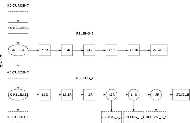 To service our most conservative users, individual release branches were introduced with FreeBSD 4.3. These release branches are created shortly before a final release is made. After the release goes out, only the most critical security fixes and additions are merged onto the release branch. In addition to source updates via CVS, binary patchkits are available to keep systems on the RELENG_4_3 and RELENG_4_4 branches updated.