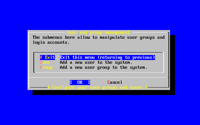 Use Tab to select [ OK ] when finished and press Enter.