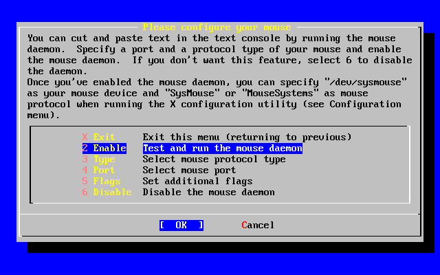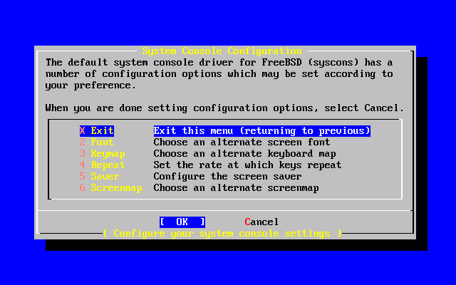 Configuration of various options follows the successful installation. An option can be configured by re-entering the configuration options before booting the new FreeBSD system or after installation using /stand/sysinstall and selecting Configure.