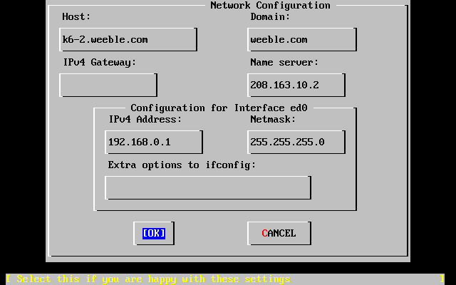 Any interface-specific options to ifconfig you would like to add. There were none in this case.