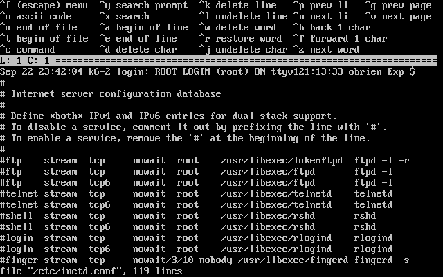 services to be enabled, including finger, ftp and telnetd. Enabling