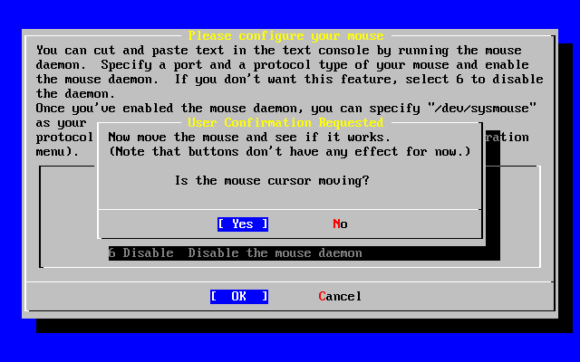 With the arrow keys, select [ Yes ] or [ No ] as appropriate and press Enter.