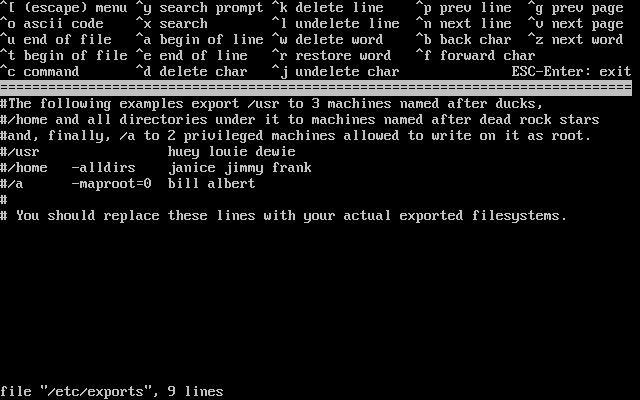Press [Enter] now to invoke an editor on /etc/exports