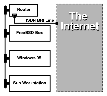 As the cost of low end ISDN routers/bridges comes down, it will likely become a more and more popular choice. An ISDN router is a small box that plugs directly into your local Ethernet network, and manages its own connection to the other bridge/router. It has built in software to communicate via PPP and other popular protocols.