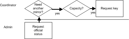 When a CVSup mirror administrator of an unofficial mirror offers to become an official mirror site, the CVSup coordinator decides if another mirror is needed and if there is sufficient capacity to accommodate it. If so, an authorisation key is requested and the mirror is given access to the main distribution site and added to the list of official mirrors.