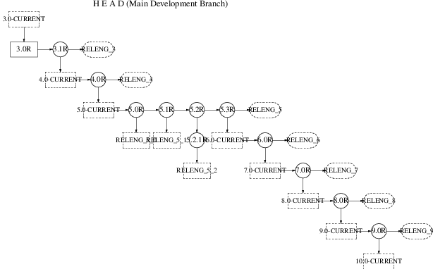 The rapid pace of FreeBSD development leaves little time for polishing the development system into a production quality release. To solve this dilemma, development continues on two parallel tracks. The main development branch is the HEAD or trunk of our Subversion tree, known as “FreeBSD-CURRENT” or “-CURRENT” for short.