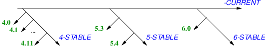-STABLE branches are code lines that are branched from HEAD at regular intervals. Only tested code is allowed onto a -STABLE branch. New features are allowed once they have been tested and stabilized in the -CURRENT branch.